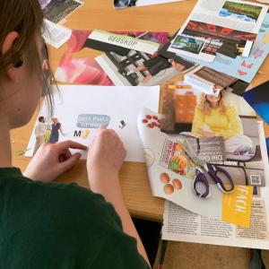 Die Klasse 9c durfte ihre Gedanken und Gefühle anschließend noch in einem Collage-Workshop künstlerisch vertiefen. Beeindruckende Collagen zeugen von tiefgreifenden Empfindungen, die der Film sowie das Thema „Flucht und Migration“ bei den Jugendlichen ausgelöst hat.
