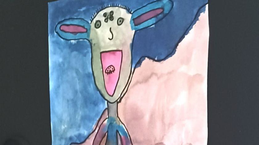 Grundlage der Arbeit von Milena Mathiebes (5a) "Lustiger Lulatsch" war ein Cadavre Exquis von drei weiteren Mitspielern ihrer Klasse. Das ist ein Spiel, bei dem das Papier in Abschnitte gefaltet wird und jeder Mitspieler einen Teil ausfüllt, ohne die Arbeit seines Vorgängers zu kennen.