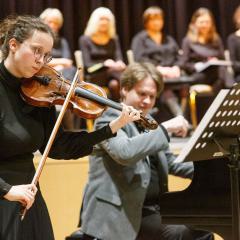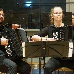 Das festliche Konzert am 15.11.2024 verzauberte die Zuhörer bereits mit den ersten Takten, die das Akkordeonorchester unter Leitung von Eduard Funkner intonierte. Mit großem Können und begeisternder Spielfreude boten die Musikerinnen und Musiker ein vielseitiges Programm, das den Bogen von Bach bis zu Filmmusik, temperamentvollem Tango und virtuosen Gegenwartskompositionen spannte, die das Publikum begeisterten. Schülerinnen und Schüler der Violin-, Gitarren- und der Schlagzeugklasse der Kunst- und Musikschule Leipzig-Land und der Ballettklasse der Tanzzone Markkleeberg, die mit anhaltendem Applaus belohnt wurden, unterstützten das Ensemble. Zahlreiche Künstlerinnen und Künstler, die sich in diesem Teil des Konzertes so eindrucksvoll präsentiert haben, sind ehemalige und jetzige Absolventinnen und Absolventen der RHS.
