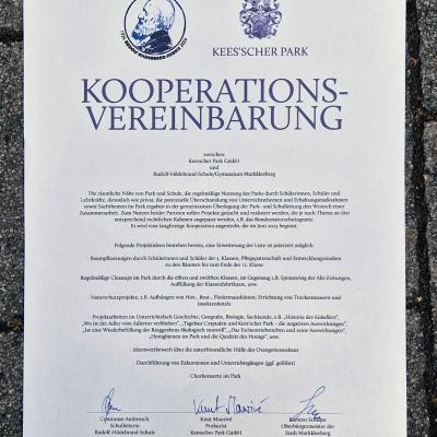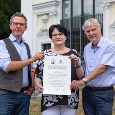 Am 13.07.2023 wurde eine Kooperationsvereinbarung zwischen der Kees'schen Park GmbH und unserer Schule unterzeichnet. Anwesend waren Schulleiterin Constanze Ambrosch, Oberbürgermeister Karsten Schütze und der Prokurist Kees´schen Park GmbH Knut Maurivé.