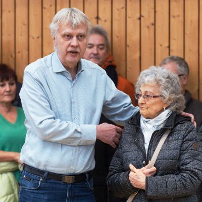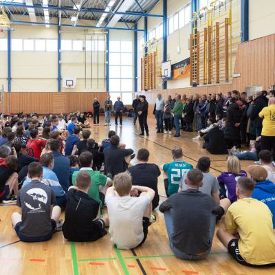 Im Anschluss an die würdigende Worte des Markkleeberger Oberbürgermeisters Karsten Schütze, der Schulleiterin Constanze Ambrosch und des TSG-Ehrenpräsidenten Rainer Leipnitz wurde die Namenstafel vor dem Haupteingang der Halle in der Mehringstraße feierlich enthüllt.