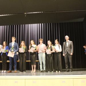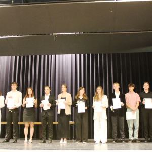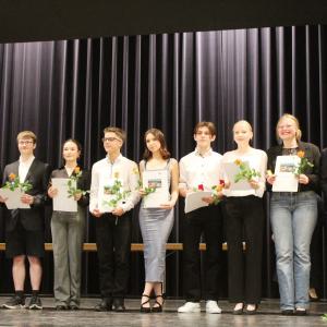 Unser Abiturjahrgang 2024 wurde am 13.06.2024 mit der Ausgabe der Zeugnisse feierlich verabschiedet. Mit einem Gesamtdurchschnitt von 2,13 verlassen insgesamt 67 Schüler unsere Schule mit einem Abiturzeugnis, drei Schüler bekamen ihr Zeugnis mit einem Durchschnitt von 1,0 überreicht: Stella Kern, Helene Wadewitz und Hannah Elisabeth Wonneberger.
