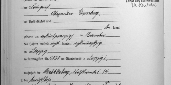 Im Dezember 1933 zog Alexander Eisenberg von Leipzig nach Gautzsch, das ab 1934 in Markkleeberg umbenannt wurde. Hier wohnte er in einer Doppelhaushälfte - “Am Wolfswinkel 14“. In der anderen Haushälfte lebte seine Schwester Lili Eisenberg mit ihrem Mann und Eisenbergs Kollegen Paul Herrmann.
