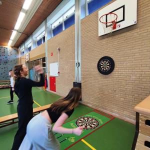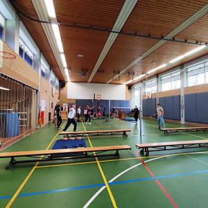 Aktiv wurde es am Nachmittag bei Sport und Spiel in der Turnhalle. In einem spannenden Turniersystem konnten sich die Schüler in vielfältigen Mini-Spielen herausfordern, von Becherstapeln, über Darts bis Fußball war alles dabei.