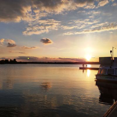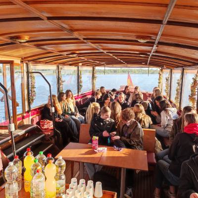 Die Anreise unserer Gäste am Montag verzögerte sich jedoch aufgrund von Staus, sodass die Begrüßung um 17 Uhr relativ kurz ausfiel. Am Abend konnten wir jedoch mehr Zeit bei einer Bootstour auf dem Cospudener See miteinander verbringen. Das Wetter verschaffte uns unvergessliche Fotomotive und bei Kartenspiel, Getränken und Snacks erlebten wir einen sehr schönen ersten Abend in Markkleeberg.