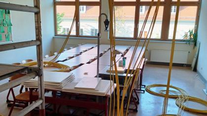 Das neue Schuljahr beginnt und die Arbeiten in unserem Schulhaus sind fast abgeschlossen. Voraussichtlich bis zu den Oktoberferien werden noch im A-Trakt Kabel verlegt und abschließende Arbeiten durchgeführt, dann sind wir durchdigitalisiert. Theoretisch natürlich, denn nur mit einem Anschluss ans GB-Netz ist es noch nicht getan. Es fehlen noch die Endgeräte, die bereits in der Ausschreibung sind und bis Anfang 2023 geliefert werden sollen. Wenn die Industrie mitspielt.