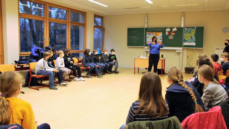 Am 19.01.2022 kam Ludivine Aubras vom FranceMobil an unsere Schule und ließ unsere Fünftklässler einen ersten Eindruck von der französischen Sprache erhaschen. Sie stammt aus dem französischen Überseegebiet La Réunion, was für die Schüler besonders spannend zu hören war.
