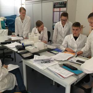 Am Dienstag und Mittwoch absolvierten wir den Hauptteil unserer Studienfahrt, die Arbeit im Labor für Lebensmittelchemie an der Hochschule Bremerhaven. Gemeinsam mit der Dozentin Frau Gebauer analysierten wir die Zusammensetzung einer Delikatess-Bockwurst. Mit modernen Geräten und Chemikalien konnten wir im gut ausgestatteten Labor viele Experimente zur quantitativen Analyse der Bestandteile durchführen. Beim schlussendlichen Vergleich der von uns Schülern aufgestellten Schätzwerte mit den experimentell bestimmten Werten zur Zusammensetzung der Bockwurst gab es erstaunlich viele Parallelen.