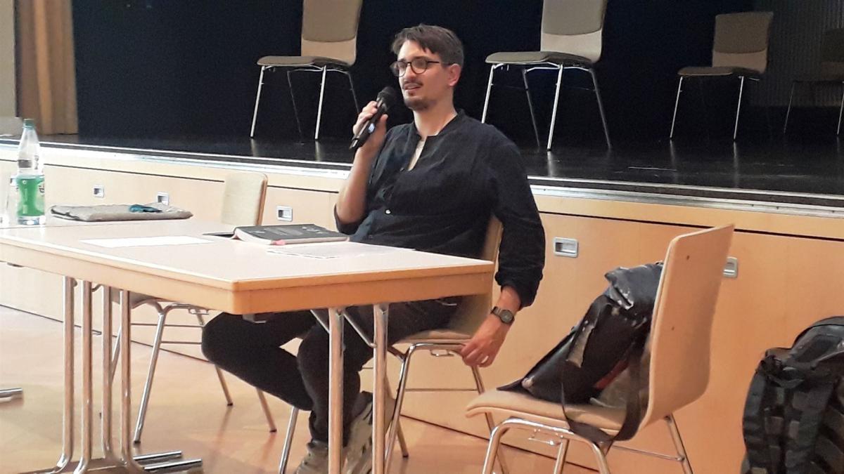 In einer eineinhalbstündigen Lesung präsentierte Benjamin Knödler sein Buch, das er mit Hilfe seiner Mutter zusammengestellt und geschrieben hat. Auf Anfrage des Hanser Verlages im letzten Jahr hatte seine Mutter, Christine Knödler, beschlossen, ihn mit ins Boot zu holen, da er auch als Journalist in Berlin bei der Onlineredaktion der Zeitung „Freitag“ schreibt und daher natürlich Erfahrung mit dem Schreiben hat. Der Verlag gab ihnen vier Monate Zeit, um dieses Projekt zu beenden, was anfangs etwas Zeitdruck verursachte. Doch trotzdem kam ein wunderbares Werk dabei heraus.