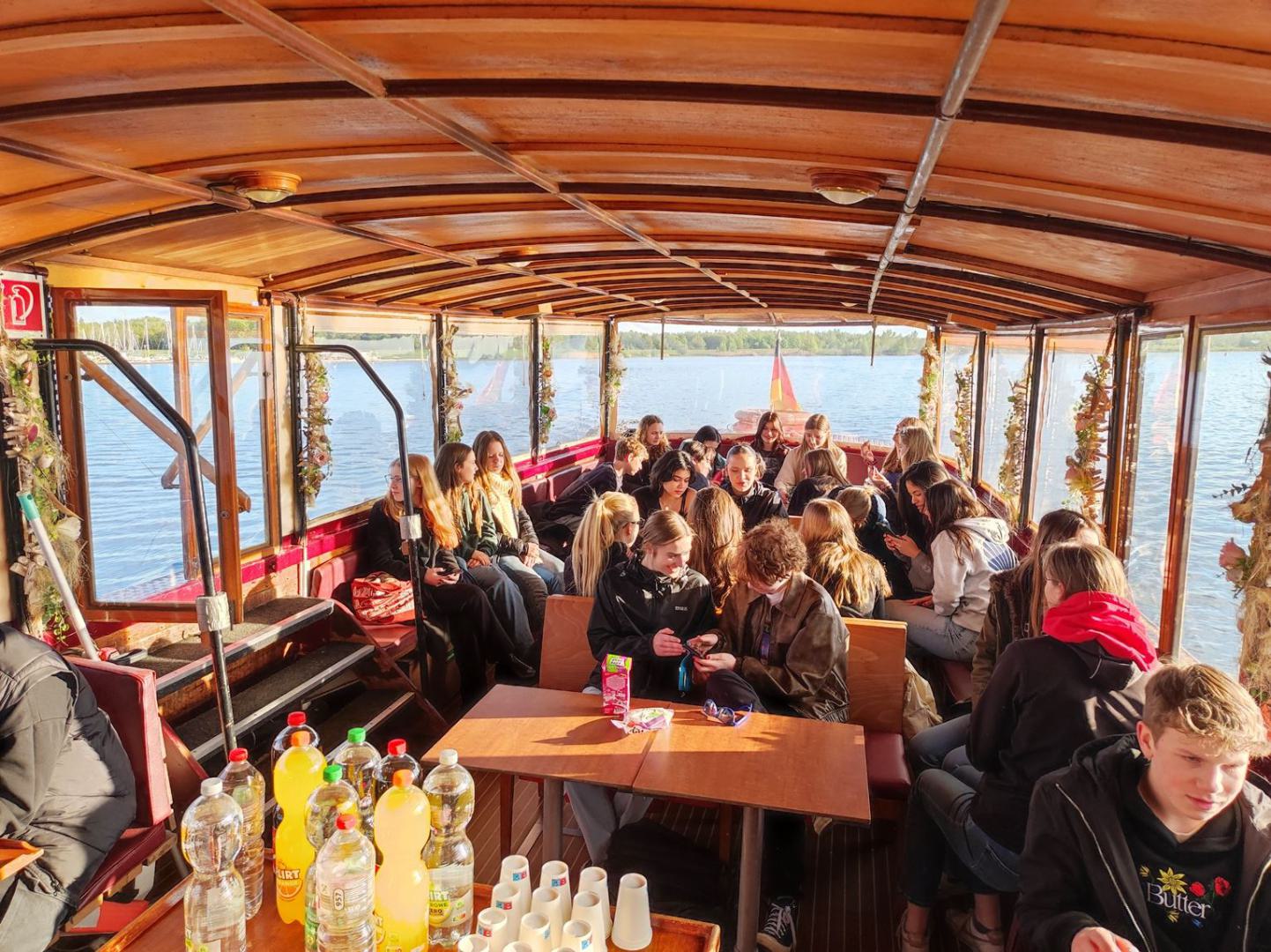 Die Anreise unserer Gäste am Montag verzögerte sich jedoch aufgrund von Staus, sodass die Begrüßung um 17 Uhr relativ kurz ausfiel. Am Abend konnten wir jedoch mehr Zeit bei einer Bootstour auf dem Cospudener See miteinander verbringen. Das Wetter verschaffte uns unvergessliche Fotomotive und bei Kartenspiel, Getränken und Snacks erlebten wir einen sehr schönen ersten Abend in Markkleeberg.