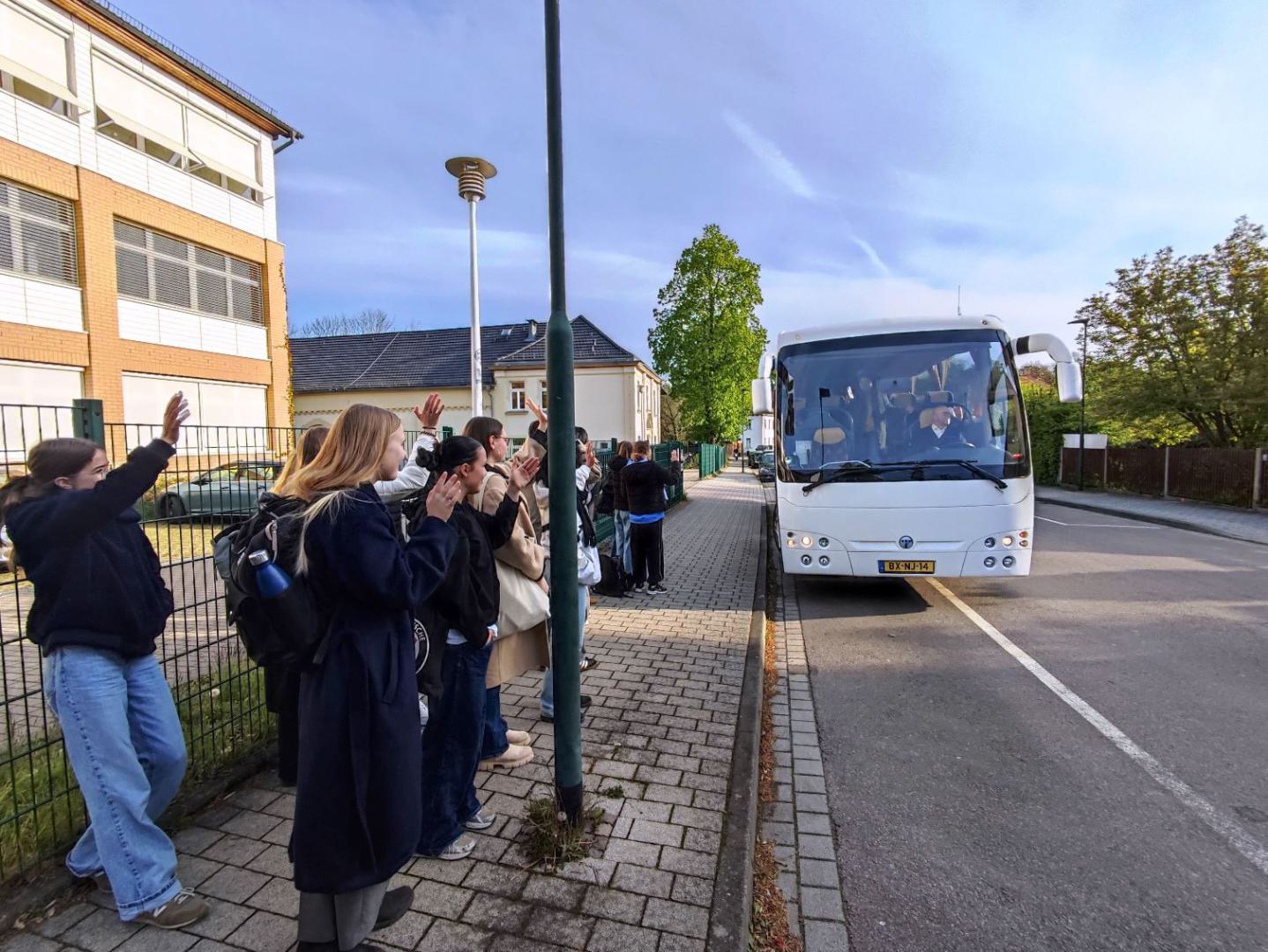 Um 7:45 Uhr verabschiedeten die deutschen Schülerinnen und Schüler gemeinsam mit Frau Ambrosch und Herrn Kruppa unsere niederländischen Gäste. Wir wünschen ihnen eine staufreie Rückreise und hoffentlich positive Erinnerung an diese anstrengende, aber schöne Woche in Markkleeberg. Wir freuen uns auf eine neue Schülergruppe im nächsten Jahr.