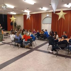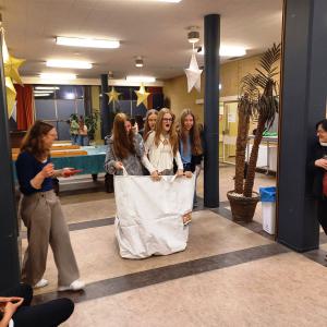 Nach einer kurzen Begrüßung durch den Schulleiter der RSG Nord Ost Veluwe, unserer Partnerschule, verabschiedeten sich unsere Schüler in ihre Gastfamilien. Erstes Kennenlernen, erstes Abendessen folgten, um dann pünktlich 19:30 das Gemeinsame mit typischen niederländischen Spielen zu vertiefen.