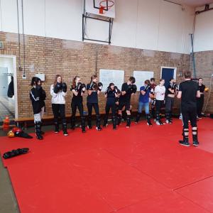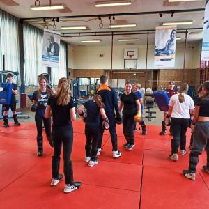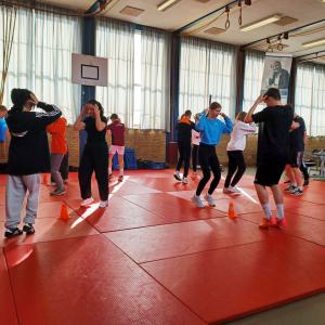 Dienstagnachmittag ist Sportnachmittag. Allerdings wie immer völlig anders als bei uns. Dodgeball, ein Mischung aus Völker- und Basketball, bei der man versuchen muss, Bälle zu werfen, diesen auszuweichen oder sie zu fangen, als die eine Alternative, Kickboxen die andere. Letztere Sportart muss man nicht erklären, nur so viel, es gab, soweit wir wissen, weder blaue Flecken noch irgendeine gebrochene Nase. Lief alles fair ab.