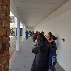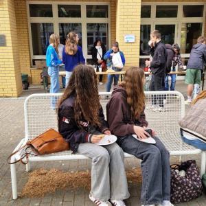 Der Austausch findet aktuell unter erschwerten Bedingungen statt, die Schule wird im laufenden Betrieb umgebaut. Heißt, der Unterricht findet unter erschwerten Bedingungen statt. Die Schüler wechseln zwischen verschiedenen Standorten, lernen u.a. in Containern und auch auf Grund fehlender Raumkapazitäten mit jeweils einer anderen Klasse in einem Raum, im vorderen Teil findet Musikunterricht statt, im anderen z.B. Englisch. Für unsere Vorstellungen unvorstellbar, aber hier machbar.