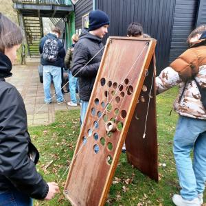 Am Nachmittag ging es an die frische Luft, das Veluws Museum Hagedoorns Plaatse präsentierte das Bauernleben der Vergangenheit. Außerhalb der offiziellen Öffnungszeiten, die Saison startet erst am 15.04. Hier gab es neben zahlreichen Informationen zum bäuerlichen Leben früher auch noch Spiele dieser Zeit, wann standen unsere Schüler das letzte Mal auf Stelzen oder räumten beim Büchsenwerfen ab?