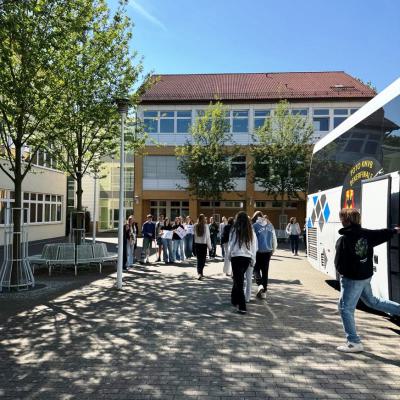 Pünktlich um 07:30 fuhr der niederländische Bus auf den Hof, um unsere Gäste sicher wieder nach Epe zu bringen. Wir haben uns wieder sehr über den Besuch unserer Partnerschule RSG Noord Oost Veluwe Epe gefreut. Nächstes Jahr startet dann ein neues Kapitel des deutsch-niederländischen Schüleraustausches – dann mit einem neuen Schulgebäude in Epe inklusive neuem Schulnamen. Wir sind sehr gespannt und freuen uns darauf!
