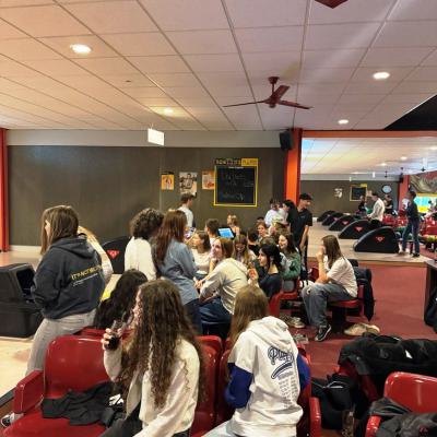 In Markkleeberg wurden sie herzlich von den Gastschülerinnen und -schülern und ihren Eltern empfangen. Nach der Begrüßung durch die Schulleiterin Frau Ambrosch folgte das erste Dinner in der Gastfamilie und am Abend eine Runde Bowling in der „Straßenbahn“.