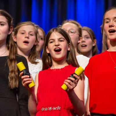 Eine sehr gute musikalische Einstimmung auf das vergangene Wochenende war ohne Zweifel das Kooperationskonzert zwischen der Musikschule des Landkreises und unserem Kinderchor der Klassen 6a und 7a, welches am vergangenen Freitag erstmalig im Lindensaal in Markkleeberg stattfand. Alle Beteiligten sangen und musizierten mit sichtlich großem Spaß und freuten sich, dass ihr überaus vielfältiges Programm beim Publikum Begeisterung auslöste. Mit dabei waren neben unserem Kinderchor einige hervorragende Instrumentalisten unserer Schule in verschiedenen Ensembles - sei dies an der Querflöte im Querflötenensemble spielend, das Gitarrenensemble unterstützend oder an unterschiedlichstem Schlagwerk des Percussionensembles Markkleeberg mitwirkend.
