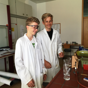 Beim Experimentieren in Zusammenarbeit mit Maximilian Salomon ging er planvoll und effizient vor, identifizierte in kurzer Zeit die vier Substanzen, so dass er den Sieg im Wettbewerb errang und als erster aus den vom Förderverein der RHS finanzierten Preisen wählen durfte.